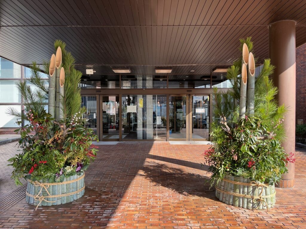 米子市役所正面玄関前に門松を設置(R6.12月)
