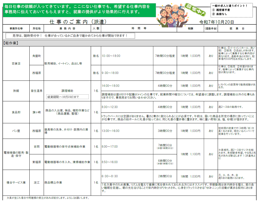 現在募集中の就業先 一覧