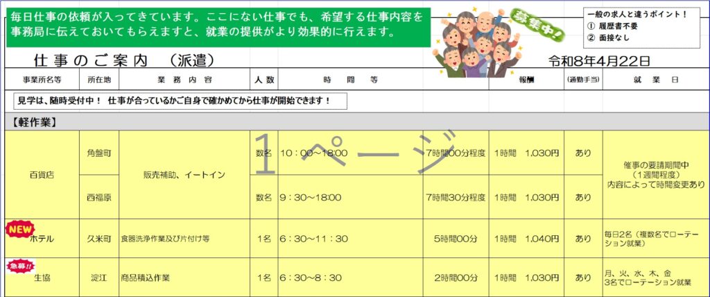 【派遣】決められた日数・時間等で定期的に働きたい方。企業等で働き、指揮命令を受けます。(雇用関係:有)